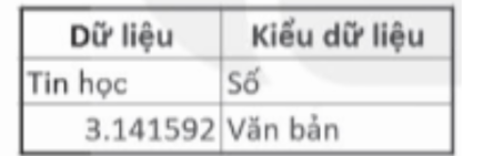 Câu 1: Trong bảng sau thì số 3.141592 thuộc kiểu dữ liệu?
